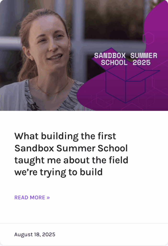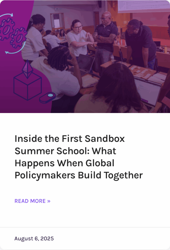 Around the world, governments, civil society, and companies are turning to sandboxes to test policies, foster innovation, and engage diverse stakeholders. But few know where to start. The Sandbox Summer School is the first global, hands-on training program to build the skills, strategies, and confidence to design governance tools that work.